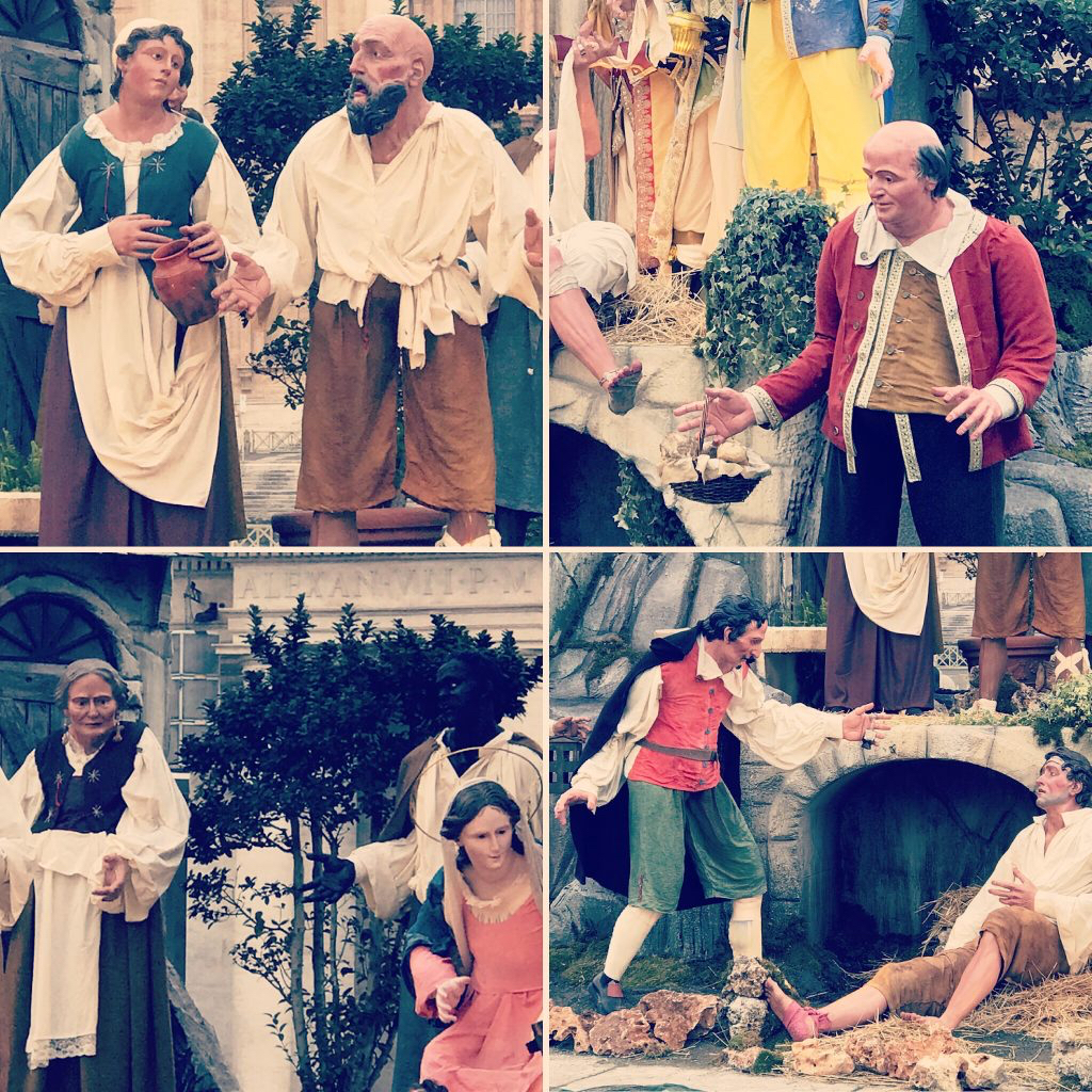 Quinto, con mucho, la mayor distracción en esta parodia de una escena de la Natividad es la representación de las siete obras corporales de misericordia . Si bien las obras corporales de misericordia son importantes, loables y necesarias para la salvación en cierto sentido (ver Mt 25,31-46), no tienen cabida en el conjunto de la Natividad. Su inclusión en la exhibición del Vaticano tiene la intención de distraer del Nacimiento del Salvador, que vino principalmente para salvarnos de nuestros pecados y del infierno, no para mejorar nuestra condición temporal (ver Mt 1:21; Mc 14: 7; Jn 6: 59,64). De hecho, las siete obras espirituales de misericordia son de una importancia aún mayor que las obras corporales, pero curiosamente no se muestran en absoluto, lo que encaja perfectamente, sin embargo, con el enfoque excesivo de «Francisco» en lo corporal y lo temporal, sobre lo espiritual y lo eterno. Como recordatorio, las obras espirituales de misericordia son: