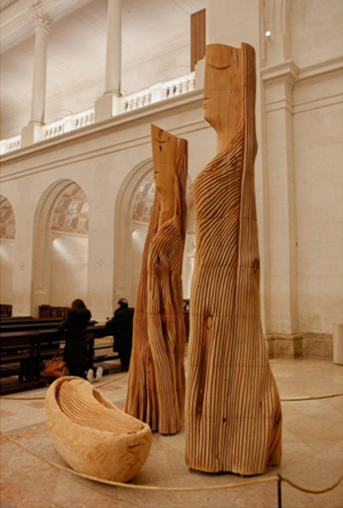 Primero , las esculturas promueven implícitamente el feminismo ya que ambas figuras parecen femeninas. Aún más, esta nota dominante alienta el lesbianismo, dado que si ambas figuras indeterminadas fueran mujeres, tendríamos una pareja de lesbianas con un bebé. Uno podría, por lo tanto, interpretar esta descripción como favoreciendo la adopción de niños por parejas homosexuales, claramente en contra de la doctrina católica.