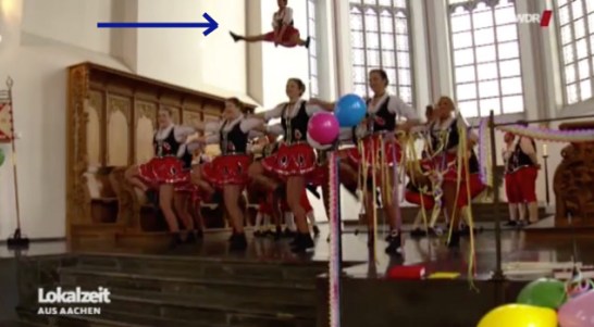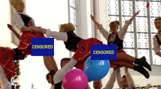 Entre los otros «aspectos más destacados» de esta «liturgia» se encontraban acróbatas en minifalda, que levantaban las piernas y daban vueltas por el aire, asistidas por unos pocos hombres que estaban encantados de echarles una mano.