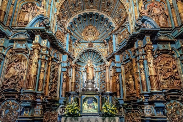 Y entre los elementos más notables encontramos una portada de columnas salomónicas -hecha con granito original de Panamá-, tallada en tres cuerpos.