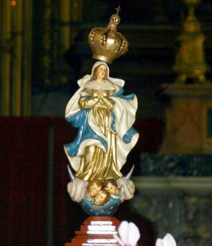 Es una talla barroca de la Asunción de la Virgen, cuyas vestiduras parece que se mueven al viento por la abundancia de sus pliegues.