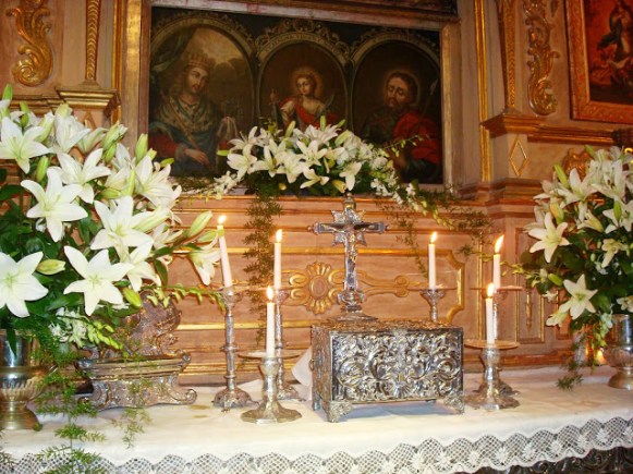 Al concluir la Santa Misa «In Coena Domini», se despojan los altares, y se saca a Nuestro Señor del sagrario, quedando los tabernáculos de todas las iglesias del mundo vacíos y abiertos, en memoria de Nuestro Señor, que fue crucificado, muerto y sepultado, para reflejar Su ausencia desde la noche de Jueves Santo hasta la Santa Misa de Pascua de Resurrección. El Santísimo es llevado solemnemente en procesión, mientras se entonan himnos, a un lugar especial llamado «Monumento», que suele ser una capilla o altar adornado con profusión de flores y velas, donde se reserva y se le adora.