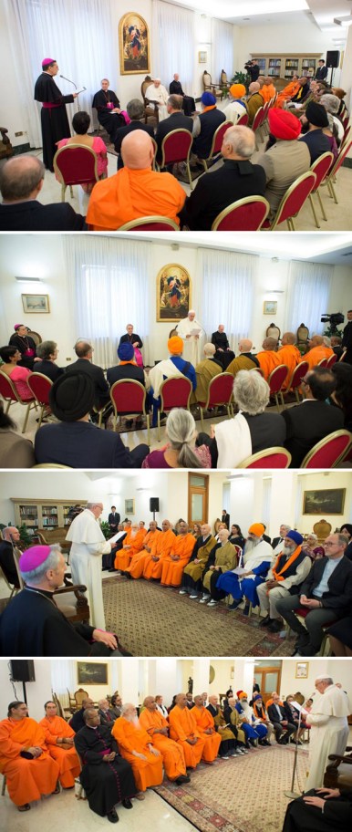 Durante esa audiencia interreligiosa , Bergoglio expresó su habitual humanitarismo pacifista, insistiendo en que los líderes religiosos «fomentan una cultura de encuentro ofreciendo una ejemplo de diálogo fructífero y trabajando juntos de manera efectiva al servicio de la vida, la dignidad humana y el cuidado de la creación. »
