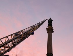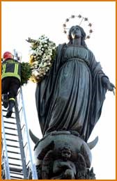 La fiesta de la Inmaculada registra en Roma, concretamente en la Plaza de España una importante tradición que se remonta a la declaración del dogma. Los primeros en hacer acto de presencia en ella el día de la Inmaculada son los bomberos de Roma, que entre las 7:30 hs y las 7:45 hs cuelgan con su larga escalinata una guirnalda de flores blancas al brazo de la imagen a la que saludan militarmente.