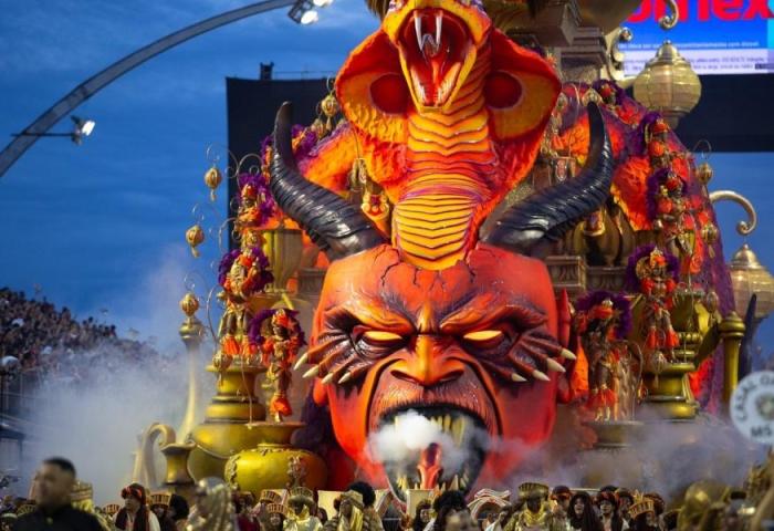 La escuela de samba “Gaviões de Fiel”, presentó un performance lleno de figuras demoníacas y a una persona disfrazada de Jesús. La intención era mostrar la batalla entre “el bien y el mal”, pero durante todo el trayecto no se pudo observar otra cosa además de la aplastante golpiza que los demonios le estaban propinando a la persona disfrazada de Jesús.