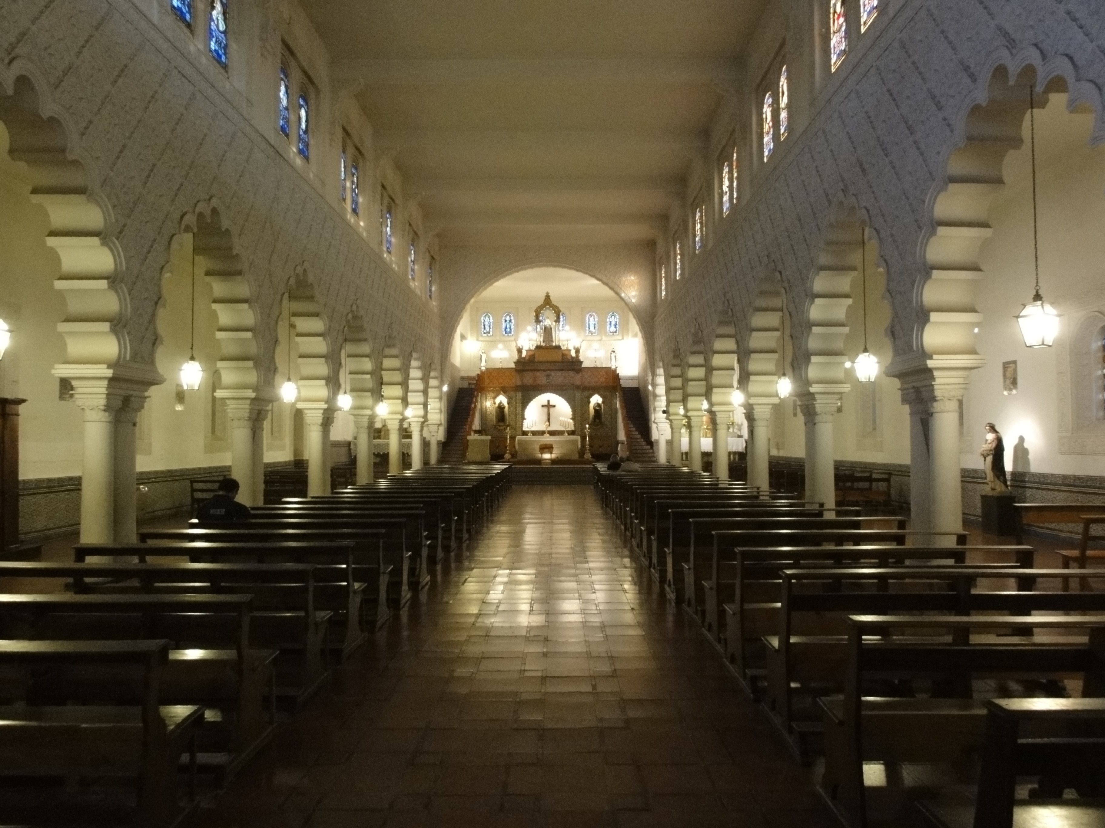 Más tarde, en abril del año 1934, se inicia una nueva construcción, el actual templo, que fue inspirado en la arquitectura árabe-granadino, característico estilo de los edificios moros españoles. Sorprenden la belleza de sus sesenta vidrieras dedicadas a las a advocaciones Marianas y de Santos; sus arcos lobulados, sus yeserías y mayólicas. En la fachada, cubierta con relieves de estuco, sobresale la torre cuadrangular del campanario.
