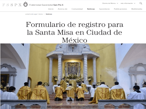 Los fieles de la FSSPX pertenecientes a la Capilla Nuestra de Guadalupe o el Convento de las Madres Mínimas (México) podrán agendar una cita para asistir a Misa en alguno de los distintos lugares disponibles.