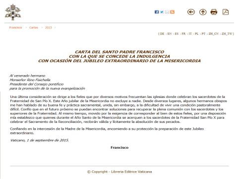 En 2015 Decimejorge determinó que quienes durante ese Año Santo de la Misericordia se acercaran a los sacerdotes de la F₪₪PX para “celebrar el Sacramento de la Reconciliación”, recibirían válida y lícitamente la absolución de sus pecados.