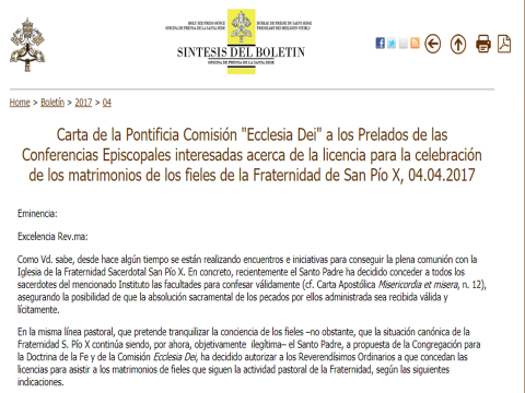Por disposición de la Santa Sede, desde el año 2017 y “en la misma línea pastoral” que la Carta Apostólica Misericordia et misera, se autoriza a los Ordinarios (obispos o administradores apostólicos) a que concedan las licencias para realizar matrimonios, lícita y válidamente, a los sacerdotes de la neo F₪₪PX, con las siguientes condiciones: