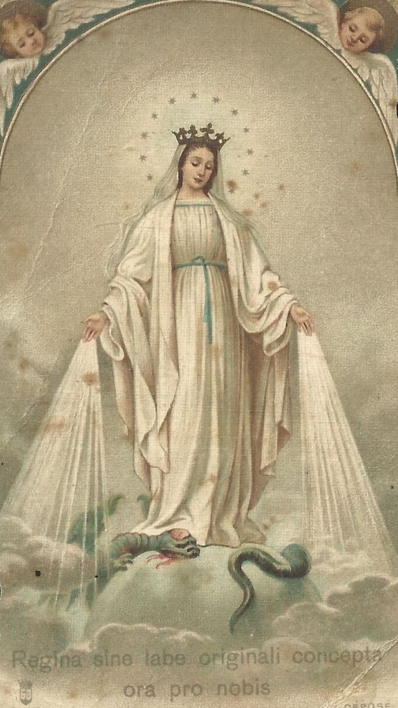 Virgen y Madre Inmaculada, mira con ojos misericordiosos al hijo que viene a Ti, lleno de confianza y amor, a implorar tu maternal protección, y a darte gracias por el gran don celestial de tu bendita Medalla Milagrosa.