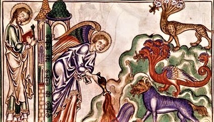 Así es también como los artistas medievales describirían los tormentos del infierno, un tema que los artistas católicos modernos evitan por temor a asustar a niños y adultos. ¡Qué horrible y bárbaro!, exclaman estremecidos al contemplar imágenes como la famosa escena del Apocalipsis del Trinity College, donde un ángel arroja a la Bestia al pozo del Infierno mientras los buitres se alimentan de los cadáveres de reyes, capitanes e incluso sacerdotes y obispos.