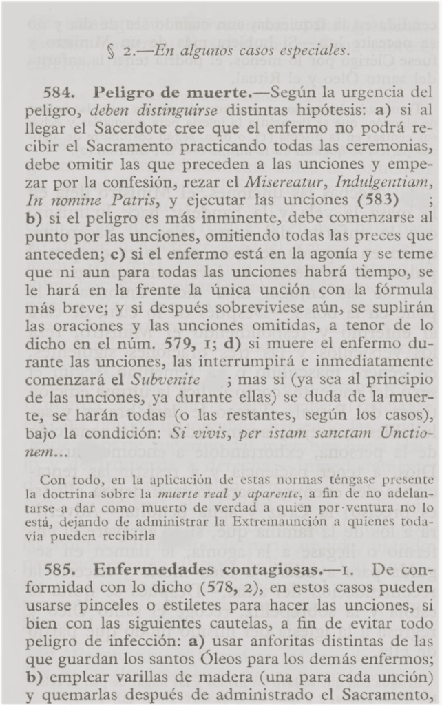 Este canon se refiere a la obligatoriedad de recibir el Sacramento de la Extremaunción, y contiene dos normas: una para el sujeto que lo recibe y otra para el sacerdote que lo administra y los demás que rodean al enfermo.