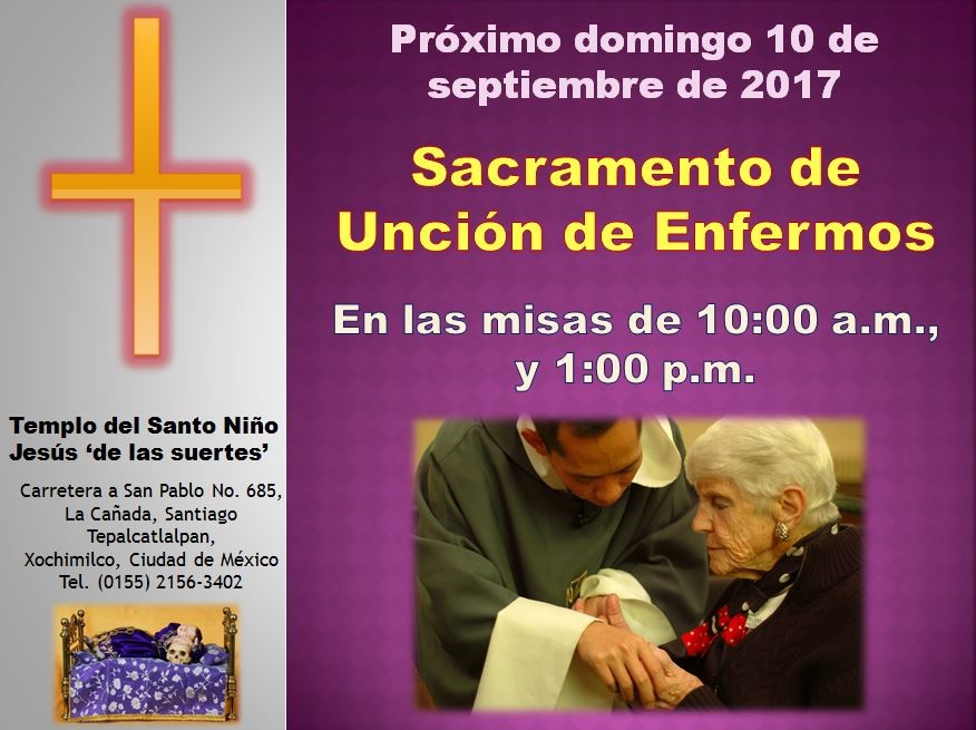 «Señor Dios, Padre de todo consuelo, que has querido sanar las dolencias de los enfermos por medio de tu Hijo, escucha con amor la oración de nuestra fe y derrama, desde el cielo, tu Espíritu Santo paráclito sobre este Oleo; tú que has hecho que el leño verde produzca aceite abundante para vigor de nuestro cuerpo, enriquece con tu bendición este óleo, para que cuantos sean ungidos con él sientan en cuerpo, alma y espíritu tu divina protección y experimenten alivio en sus enfermedades y dolores; que por tu acción, Señor, este aceite sea para nosotros óleo santo, en nombre de Jesucristo nuestro Señor. Que vive y reina por los siglos de los siglos».