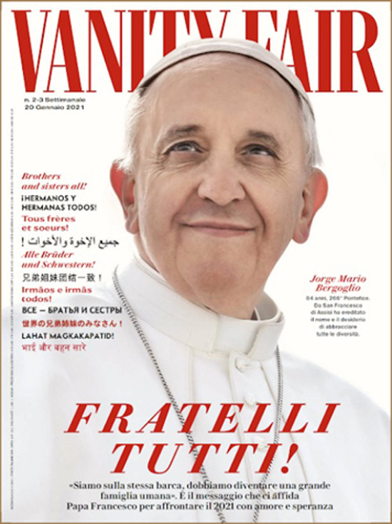 La edición italiana de Vanity Fair , publicada el 7 de enero, dedicó su portada a Francisco y lo declaró «Hombre del año».