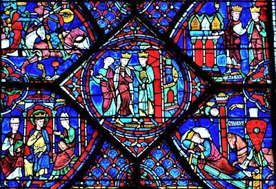 El vitral de Carlomagno, en Chartres, muestra escenas de su vida