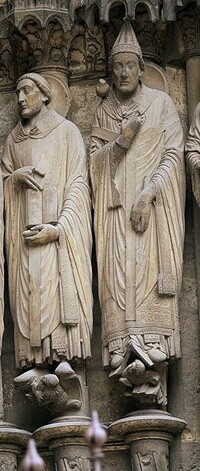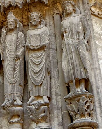 En Chartres se resolvió de manera ingeniosa. Se colocó debajo de sus pies una pequeña escena que recordaba algún episodio famoso de la vida o muerte del Santo.