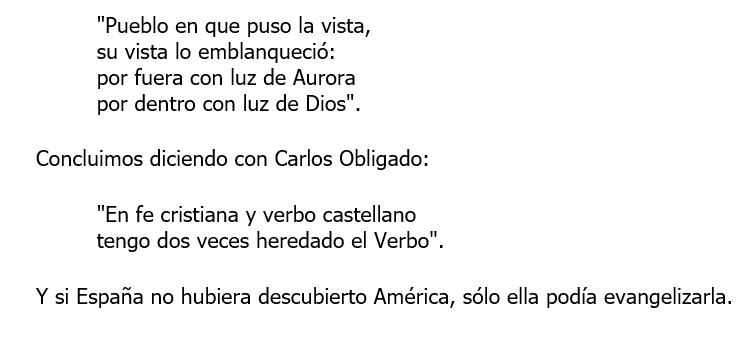 He dicho los hispanos, no meramente los españoles, pues desde ya sabemos que la hispanidad sobrepasa la geografía peninsular: engarza una geografía —y no solamente telúrica— maravillosa y ricamente universal.