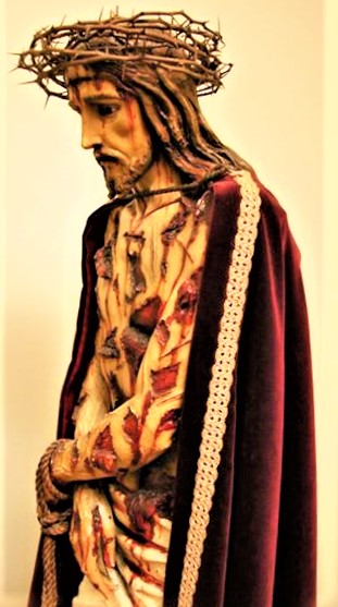 Una de las torturas más crueles infligidas a Nuestro Divino Salvador fue la Flagelación en la columna. Pilato vacilante, sin encontrar culpa en Cristo, ordenó la flagelación con el objetivo de despertar la piedad de los judíos y dejarlo ir. Acto seguido, los crueles verdugos azotaron al Cordero Inocente con tres tipos de azotes, cada uno más cruel que el anterior. La ley romana prescribió 50 golpes, pero Nuestro Señor recibió miles de golpes. (Esto está confirmado por los informes de la Venerable María de Agreda y Santa Brígida).