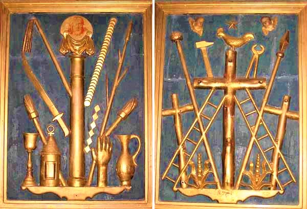 Eran los Instrumentos de la Pasión, que en términos heráldicos se convirtieron en “Las armas de Cristo”, porque estos fueron los aparejos que Cristo usó para lograr su conquista sobre Satanás, la muerte y el pecado.