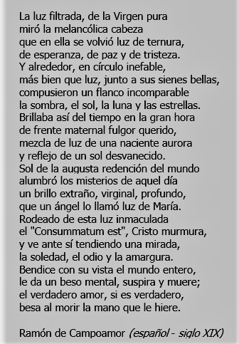«Lo hemos visto como un leproso, no había en el dignidad ni hermosura, como un herido de Dios y humillado”, había dicho el Profeta. Y la maldad de los hombres atormentaba a María tanto como el aspecto lastimoso de su Primogénito; porque todos los hombres se habían convertido en sus hijos segundos.