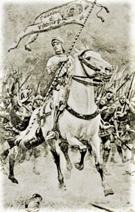 Y la hija de Dios se puso de pie. Niña ingenua, voces celestiales le hablaban de la gran piedad que hay en el reino de Francia. Temerosa y tímida pastora de Dom-Rémy, el santo patrón de su aldea, el Samuel francés, la espera al pie del altar en Reims, donde debe llevar hasta al heredero de Clovis.