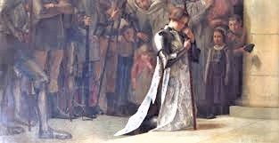 Pero si la huella de la cruz queda así marcada incluso en la espada victoriosa de Juana, ¿qué será ahora que esta espada se hace añicos sin que nunca se pueda volver a forjar? Si la etapa gloriosa de su vida no es ajena al dolor, ¿qué será ahora que entra en el período de su angustia, ahora que cesa la acción y comienza la pasión? «Sólo duraré un año, y apenas un poco más», le decía a menudo al rey; “debe intentar emplearme bien este año”.