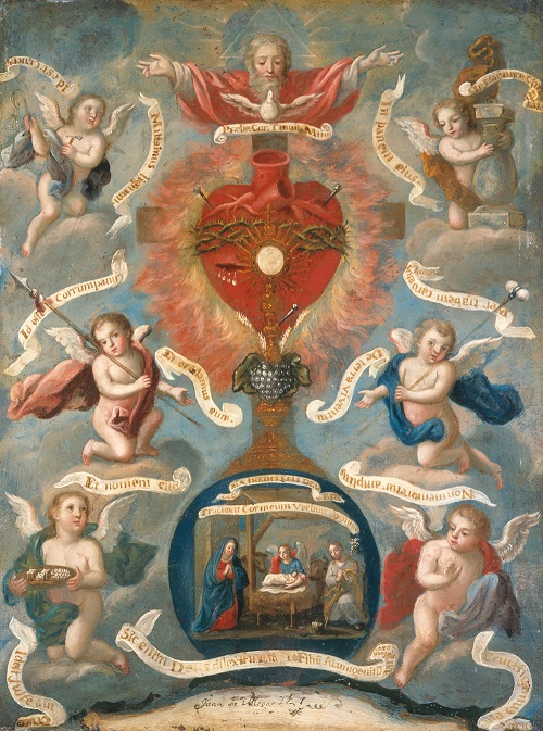Varios autores místicos no prestaron suficiente atención a esto. No ven sino casi exclusivamente en la santa Eucaristía, entendido el sacrificio de la misa, sino la extensión de la Encarnación. Pero este amor encarnado es también el mismo amor que sufrió por nosotros, y este Corazón se nos aparece precisamente en la santa Eucaristía encumbrado por la Cruz, la señal y el instrumento de la Redención.