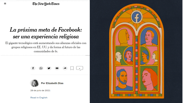 Ahora, después de que la pandemia de coronavirus obligó a los grupos religiosos a explorar nuevas maneras de operar, Facebook ve una oportunidad estratégica aún mayor para atraer a usuarios muy comprometidos a su plataforma. La empresa pretende convertirse en la sede virtual de la comunidad religiosa y quiere que las iglesias, mezquitas, sinagogas y otras entidades integren su vida religiosa en su plataforma, desde la celebración de servicios de culto y la socialización más informal hasta la solicitud de dinero. Está desarrollando nuevos productos (como el audio y el intercambio de oraciones) dirigidos a grupos religiosos.