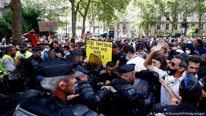 En Francia, el pasado fin de semana, más de 160.000 personas se manifestaron en todo el país contra los planes del gobierno de aplicar estrictas medidas. En particular, la vacunación obligatoria prevista para determinados grupos profesionales provocó rechazo. A partir de mediados de septiembre, el personal sanitario, así como el de seguridad y rescate, tendrá que demostrar que se ha vacunado para poder realizar su trabajo. Los que no puedan hacerlo se enfrentarán a una suspensión sin salario. Los opositores a las medidas consideran que se trata de una injerencia inadmisible en la autodeterminación de los ciudadanos.