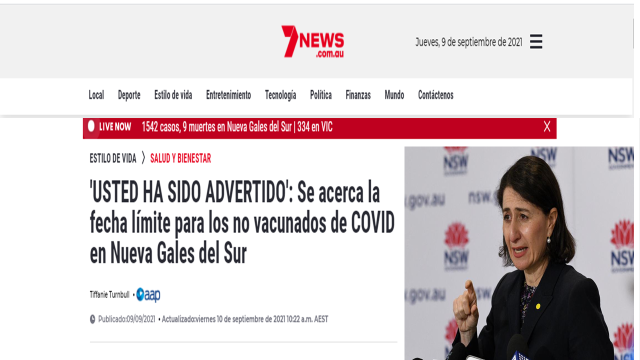 «Se le advirtió: venga y vacúnese o no podrá participar», dijo Berejiklian a los periodistas”.