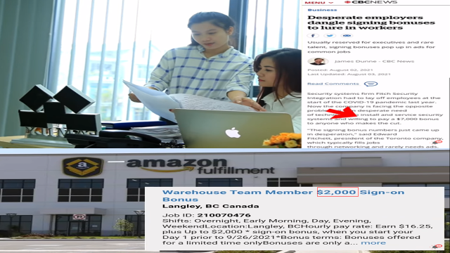 Una empresa de Toronto de sistemas de seguridad FITCH SECURITY INTEGRATION INC. Despidió a muchos de sus empleados a principios de la PLANdemia, hoy esa misma empresa tiene un problema opuesto, necesita desesperadamente técnicos para instalar sus sistemas de seguridad y no los consigue, en su desesperación ofrecen un bono de contratación hasta de 7.000 dólares canadienses para cualquiera que acepte el trabajo, pero este no es el único caso, restaurantes, ensambladoras, almacenes e incluso hasta la industria petrolera canadiense enfrenta el mismo problema, de hecho en todos los motores de búsqueda se repite lo mismo. La MASÓNICA Amazon que, normalmente no tiene problemas de contratación, ha tenido que ofrecer lo mismo.