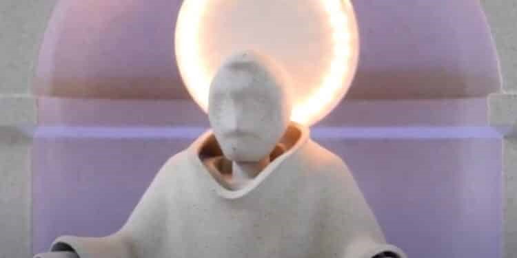 san TO, un robot con cara de piedra que se parece a la estatua de un santo (Sic), actuó en la iglesia JP II de Varsovia (Polonia).