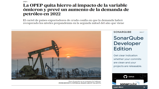La Organización de Países Exportadores de Petróleo (OPEP) cree que, a pesar de los temores desatados en las últimas semanas, la nueva variante ómicron tendrá un impacto “leve y corto” sobre la economía global. “El mundo”, confía el cartel de productores de crudo, “está mejor equipado para gestionar el covid-19 y sus desafíos”. Ese menor impacto de lo previsto ha llevado al organismo a mantener este lunes sin cambios su previsión de demanda de petróleo para 2022 en 100,6 millones de barriles diarios, 4,2 millones más que en 2021. De cumplirse la proyección recogida en el informe mensual de la OPEP, el consumo global de crudo recuperaría los niveles prepandemia en la segunda mitad del 2022.