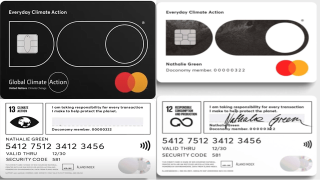 Esta tarjeta es el fruto del programa ActNow de la ONU, que consiste en diez acciones individuales para ayudar en conjunto a abordar la crisis climática. Respaldada el FEM (Foro Económico Mundial) y MasterCard, esta tarjeta promete hacer un seguimiento de tu gasto en carbono y desconectarte cuando alcances el máximo de carbono permitido.