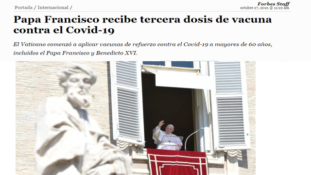 Por último, el Pseudoprofeta Francisco insistió el viernes (17-12-2021) que se solidaricen los Estados para que toda la humanidad tenga la vacuna “Qué la comunidad internacional intensifique sus esfuerzos de cooperación para que todos tengan un acceso rápido a las vacunas”.