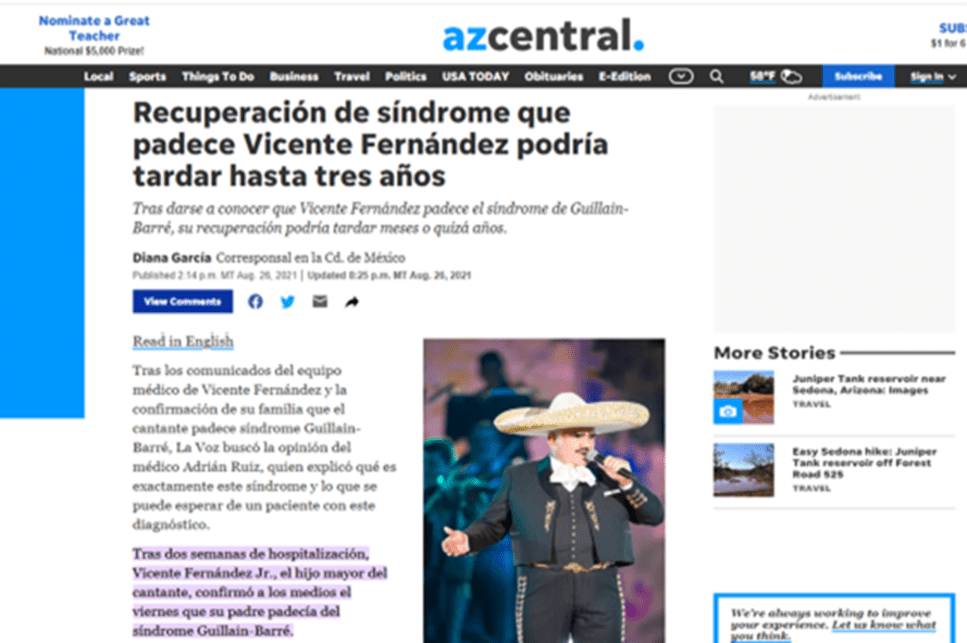 Esta vendimia pro infierno tiene lógica, en un mundo descristianizado la gente muere sin Dios, sin siquiera rezar un acto de contrición (ya no lo saben ni rezar) y la muerte llega ya sea de “Repentinitis”, como vemos hoy, o anunciada, como en casos que han pasado varios días o meses antes que llegue la muerte, De cualquier manera, raramente hay arrepentimiento; y no es que esté yo condenando al infierno a todos los que están muriendo, pero, se dice que el árbol caerá, cuando le metan el hacha, del lado en donde esté inclinado. Por ejemplo tenemos la muerte del “Charro de Huentitán” Vicente Fernández, el famoso cantante mexicano, que dicho sea de paso se vacunó el 19 de diciembre de 2020; por cierto que se armó un escándalo, ya que fue a E.U. a inocularse porque a México todavía no llegaban las vacunas; desgraciadamente para su familia esto se hizo público, porque su familia lo quería mantener en “la intimidad familiar”, pero ya ven cómo es esto de la farándula. Resultado, a los pocos meses de ser vacunado, contrajo el trastorno denominado síndrome de Guillain-Barré (que fue de lo que advirtieron los “médicos por la verdad”, allá por marzo 2021).