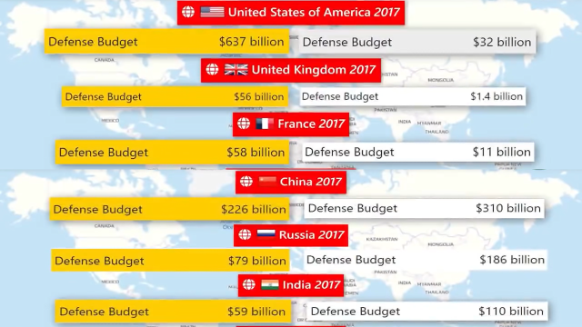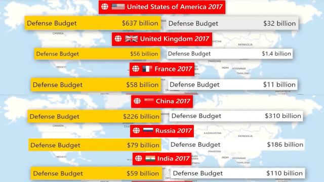 Las proyecciones del presupuesto de defensa para estos países occidentales siguen la misma línea, una fuerte caída en billones, mientras que, tal como lo predice Deagel.com, China, Rusia, India y Brasil aumentan su presupuesto de defensa en cientos de billones, mostrando claramente un cambio en los poderes militares a nivel mundial. Los países asociados al grupo de desarrollo económico BRIC (como originalmente se estableció) sus expectativas futuras terminan con estabilidad en sus poblaciones, un PIB en aumento y un creciente presupuesto de defensa.