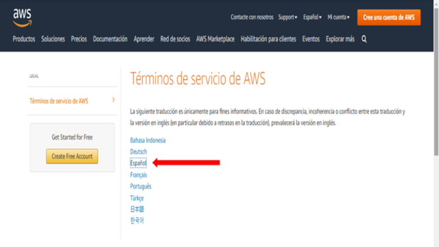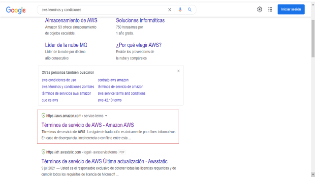 Por ejemplo, si te metes a google y tecleas AWS aparecerá: Términos de servicio de AWS. Amazon AWS.