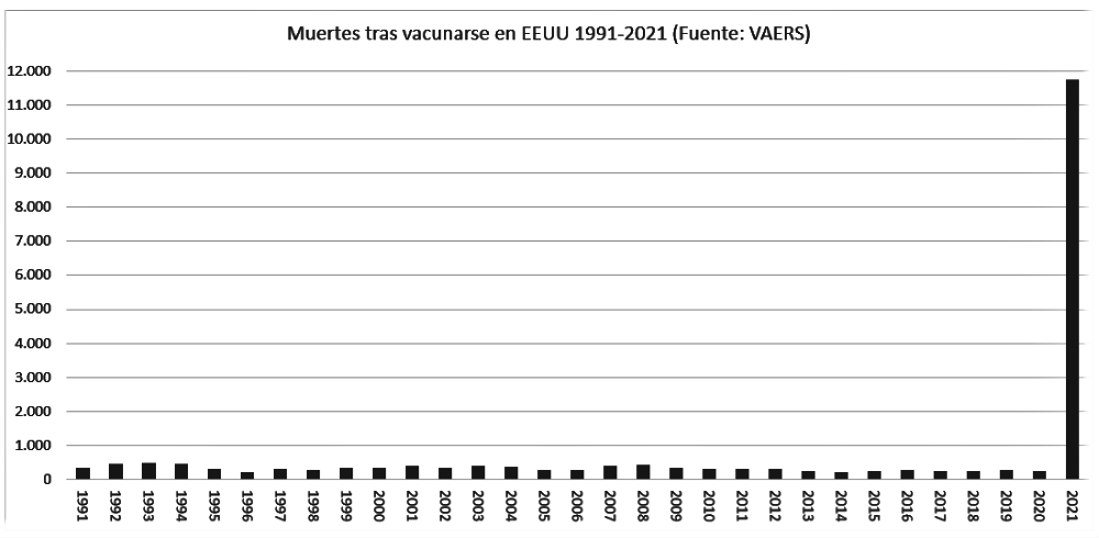 – casi 12.000 muertes tras vacunarse (58 casos por millón de vacunados con pauta completa),