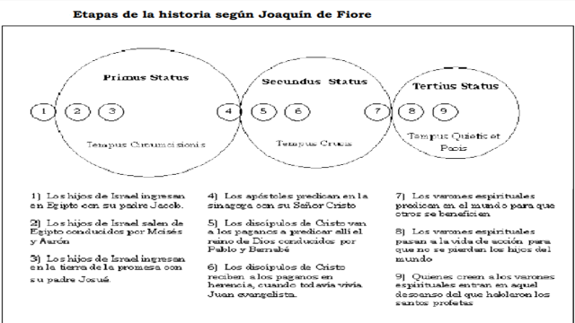 Las tres etapas de Joaquín representan un orden de jerarquía, dentro de la cual la tercera se entiende como una etapa definitiva de “perfección”; resulta evidente que su propósito es la glorificación del monaquismo, y de ninguna manera un análisis científico, como sí hizo la revolución masónica, dicha francesa, de la historia.