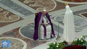Solamente una frase sensata que está acorde con la realidad espiritual que vivimos, dijo: “El Misterio de Iniquidad”: “En la miseria del pecado, en nuestros cansancios y fragilidades, en el misterio de la iniquidad…, tú, Madre Santa, nos recuerdas que Dios no nos abandona”.