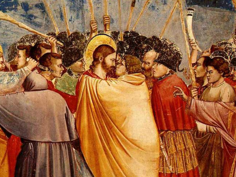 De ahí que añadiera inmediatamente en tono grave: «Judas, ¿con un beso entregas al Hijo del hombre?»
