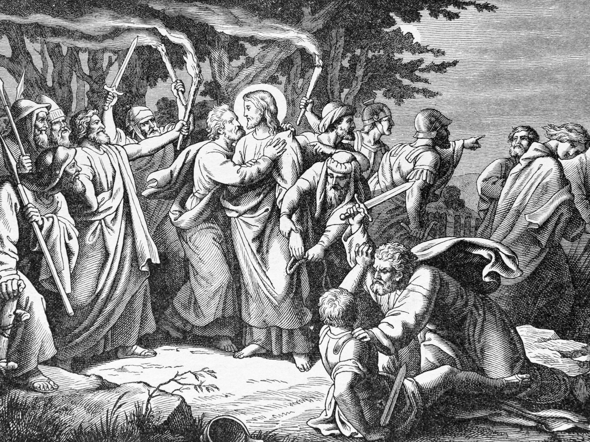 Al decir Cristo: «Dejad que éstos se vayan», no imploraba su permiso, sino que declaraba, de una manera velada, que Él mismo había concedido a los Apóstoles el poder de marcharse para que se cumplieran aquellas palabras: «Padre, he guardado a los que me diste y ninguno se ha perdido excepto el hijo de la perdición.» Vale la pena contemplar aquí con cuánta eficacia pre-dijo Cristo en estas palabras el contraste entre el fin de Judas y el de los demás, la ruina del traidor y el feliz desenlace de los otros. Habla Jesús con tal firmeza que no parece anunciar algo del futuro, sino lo que ya ha ocurrido: «He guardado -dice- a aquellos que me diste.» No se defendieron con sus propias fuerzas, ni se salvaron por la misericordia de los judíos, ni escaparon por la negligencia de la cohorte, sino gracias a Cristo: «Yo los he guardado. Y ninguno se ha perdido sino el hijo de la perdición. También él estaba entre los que Tú me diste. Él me recibió, y también a él, como a todos los que me reciben, le he dado poder de llegar a ser hijo de Dios. Cuando la avaricia le enloqueció se pasó a Satanás, y abandonándome y traicionándome con perfidia, rechazando la salvación y esforzándose en mi destrucción, se convirtió en hijo de la perdición y pereció como un miserable en su propia miseria. «Infaliblemente cierto del final de Judas, Cristo ha-bla de su ruina como si ya hubiera acontecido. Mientras Cristo es apresado, aparece el infeliz traidor como jefe y guía de los que le capturan, y yo lo imagino gozándose y exultando en el peligro de su Maestro y de los que fueron sus condiscípulos, pues estoy convencido de que deseaba y esperaba que todos fueran arrestados y condenados. El carácter perverso y la locura furiosa de la ingratitud se manifiestan por esta peculiaridad: que desea la muerte de la misma víctima a la que inicuamente ha injuriado. Quien tiene su conciencia plagada de úlceras criminales ve en el mismo rostro de su víctima un reproche insoportable de su acción, y huye de él con espanto.