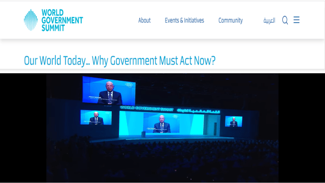 El mismísimo Mohamed bin Rashid Al Maktum, actual Ministro de Defensa, primer ministro y Vicepresidente de los Emiratos Árabes Unidos (EAU) y mandatario del emirato de Dubái, expresó que la cumbre del gobierno mundial proporcionará una plataforma para discutir nuevas ideas y puntos de vista que puedan ayudar a tener un futuro mejor para la humanidad (y por supuesto para ellos) a través de una sola cosa: anticipar el futuro y mejorar la preparación para afrontar los futuros cambios venideros; según el jeque las esperanzas de miles de millones de personas dependen de las estrategias, iniciativas y soluciones proactivas que brinden los gobiernos para enfrentar estos desafíos actuales y futuros.