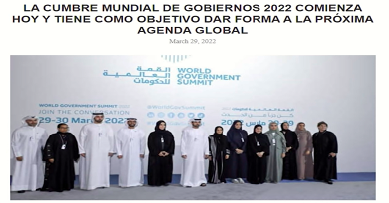 Del 29 al 30 de marzo se celebró la cumbre del Gobierno Mundial 2022, allí se reunieron los jefes de organizaciones internacionales, altos funcionarios gubernamentales, líderes expertos globales, todos ellos convocados para hablar sobre qué van a hacer con nosotros (que ya lo saben, pero hay que taparle el ojo al macho), allí se hicieron sesiones, discutieron y resaltaron los desafíos globales y sus posibles soluciones.