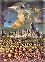 Así también la gran ciudad capitalista, imperial y sacrílega que será la sede de la Bestia será saqueada, incendiada y destruida. ¿Será Nueva York, Londres, Moscú, Roma? Por lo que dice san Juan Apocaleta parece que será un puerto de mar. El que sea.
