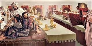 Respondiendo Jesús les habló de nuevo en parábolas, y dijo: “El reino de los cielos es semejante a un rey que celebró las bodas de su hijo. Y envió a sus siervos a llamar a los convidados a las bodas, mas ellos no quisieron venir. Entones envió a otros siervos, a los cuales dijo: “Decid a los convidados: Tengo preparado mi banquete; mis toros y animales cebados han sido sacrificados ya, y todo está a punto: venid a las bodas”. Pero, sin hacerle caso, se fueron el uno a su granja, el otro a sus negocios. Y los restantes agarraron a los siervos, los ultrajaron y los mataron. El rey, encolerizado, envió sus soldados, hizo perecer a aquellos homicidas: y quemó su ciudad. Entonces dijo a sus siervos: “Las bodas están preparadas, mas los convidados no eran dignos. Id, pues, a las encrucijadas de los caminos, y a todos cuantos halléis, invitadlos a las bodas”. Salieron aquellos siervos a los caminos, y reunieron a todos cuantos hallaron, malos y buenos, y la sala de las bodas quedó llena de convidados. Mas cuando el rey entró para ver a los comensales, notó a un hombre que no estaba vestido con el traje de boda. Le dijo: “Amigo, ¿cómo has entrado aquí sin tener el traje de boda?” Y él enmudeció. Entonces el rey dijo a los siervos: “Atadlo de pies y manos, y arrojadlo a las tinieblas de afuera; allí será el llanto y el rechinar de dientes. Porque muchos son llamados, mas pocos escogidos.”
