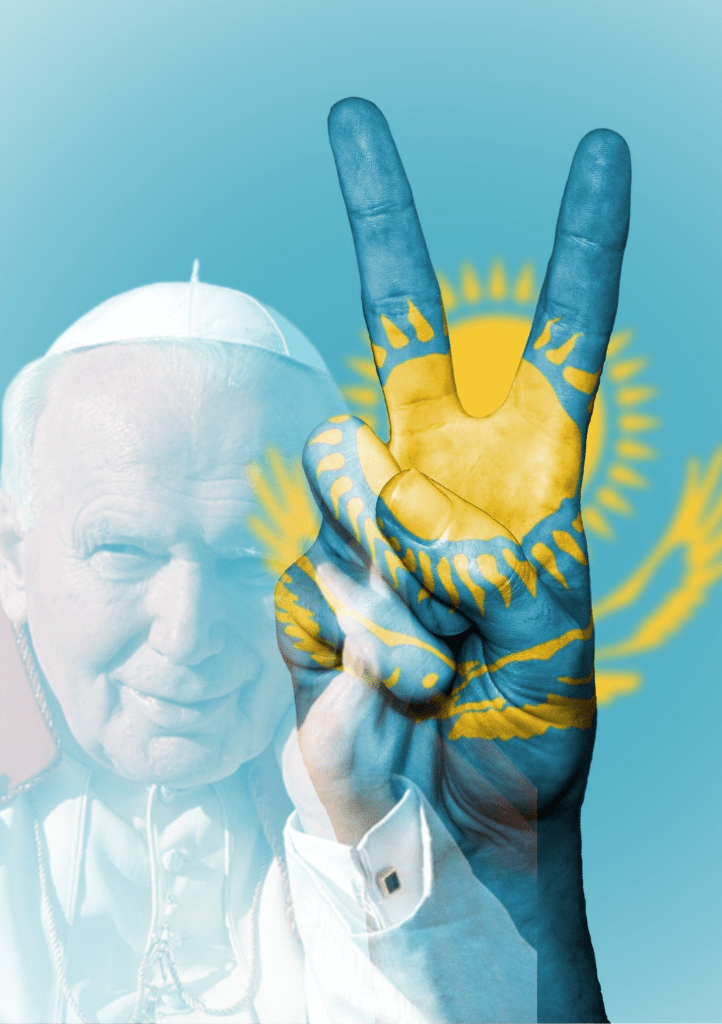Juan Pablo II visitó Kazajstán en 2001, quien viajó allí bajo el lema “Amaos los unos a los otros”.
