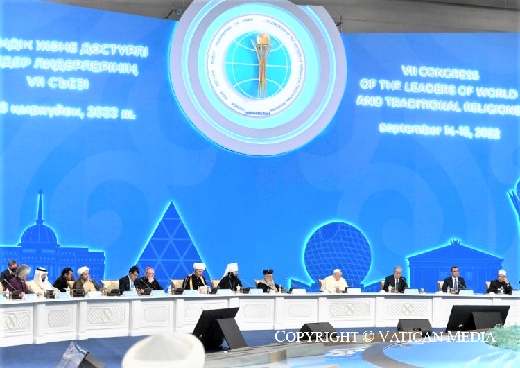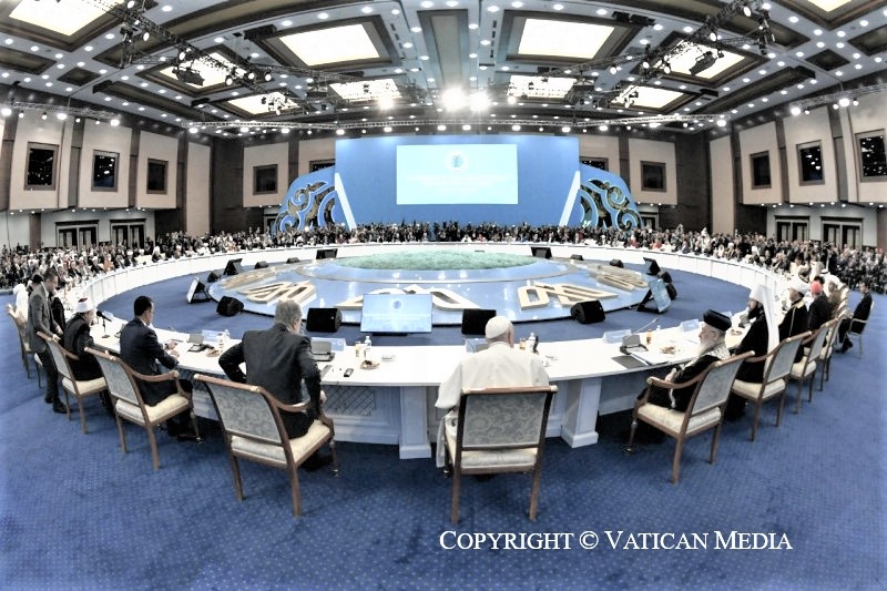 Doy gracias a Dios, que ha guiado mis pasos hasta la ciudad de Astana, capital de este noble y vasto país, situado en el corazón del territorio euroasiático. Beso con afecto esta tierra, que ha dado origen a un Estado multiétnico, heredero de seculares y múltiples tradiciones espirituales y culturales, y ahora encaminado hacia nuevas metas sociales y económicas.