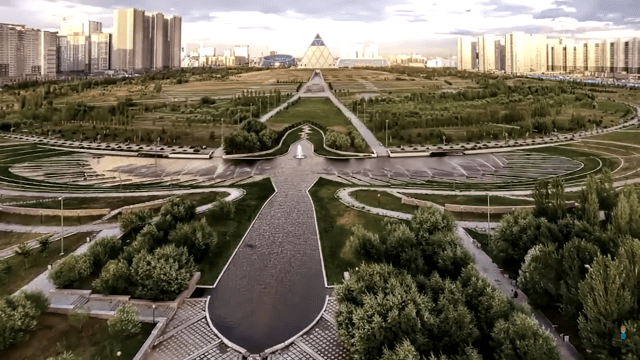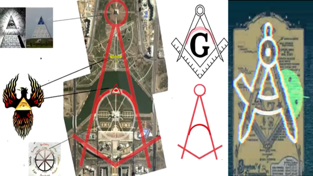 Norman plasmó esa simbología en estas zonas de la ciudad; y al observar la plaza desde arriba se puede notar una figura muy parecida al compás masónico y a la pirámide llamada el Palacio de la Paz y la Reconciliación… Recuerden el logo…